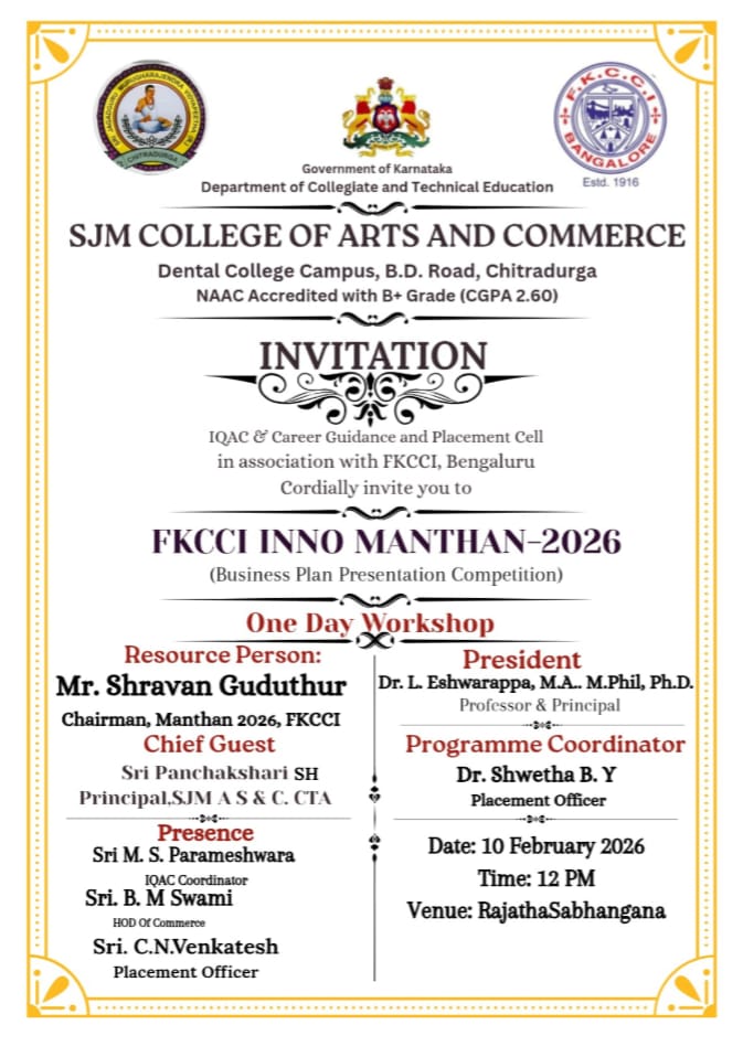 The cell has arranged various soft skill programmes on communication skills, personality development, stress management and preparation of curriculum to facilitate the students by way of recognizing and nurturing their talents. Interview sessions as well as aptitude tests were organized for final year students, training programmes on soft skill development and career building were arranged for benefits the students of the History, Optional English, Economics, Political Science, Sociology and Optional Kannada. Also, conducted interview skill awareness to our students inorder to gain success in their career. Motivation classes were conducted to bring about voluntary commitment and involvement among students to perform well.